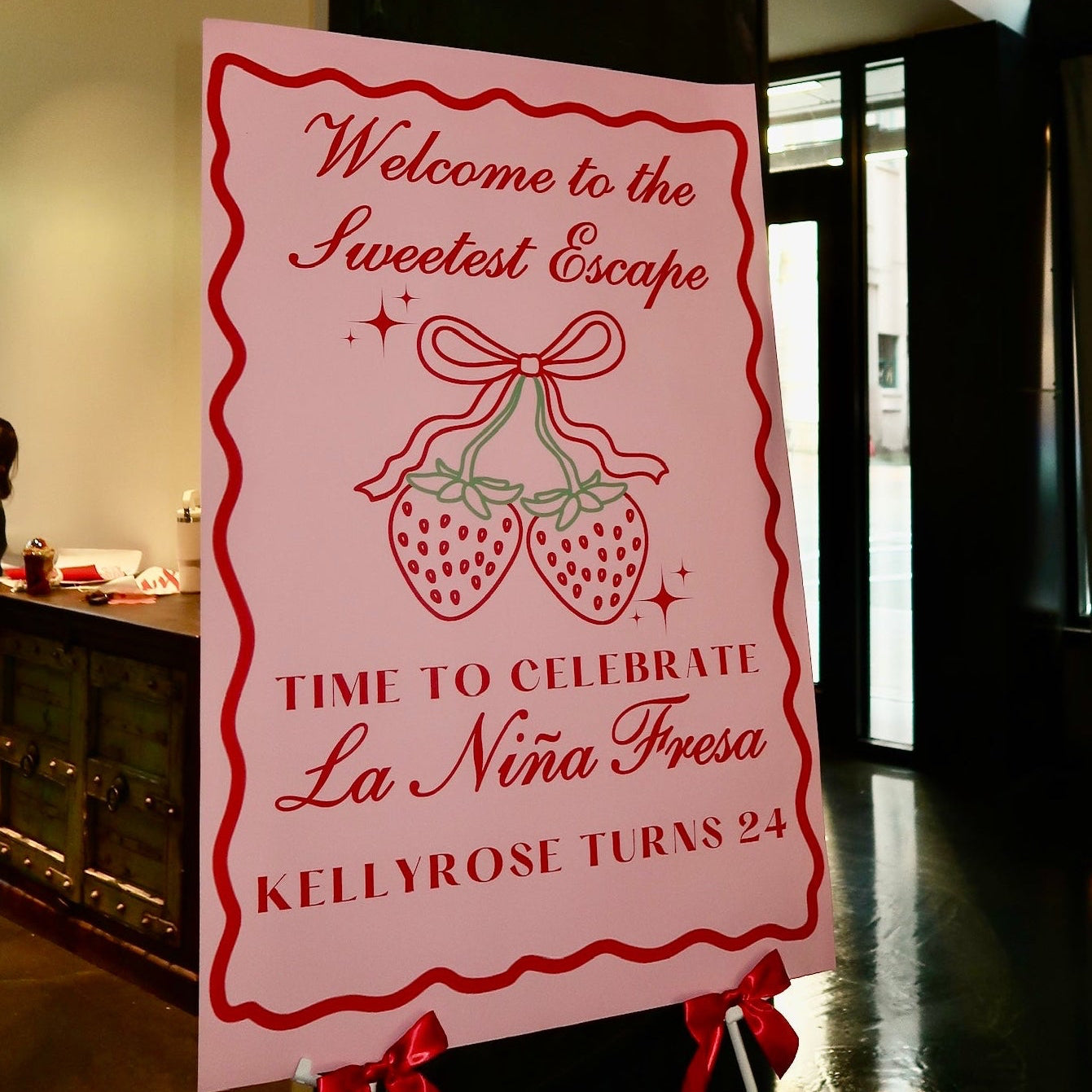 Let the girls know the fresita fantasy starts here. This sign sets the scene with soft glam, fresita energy, and just enough drama.