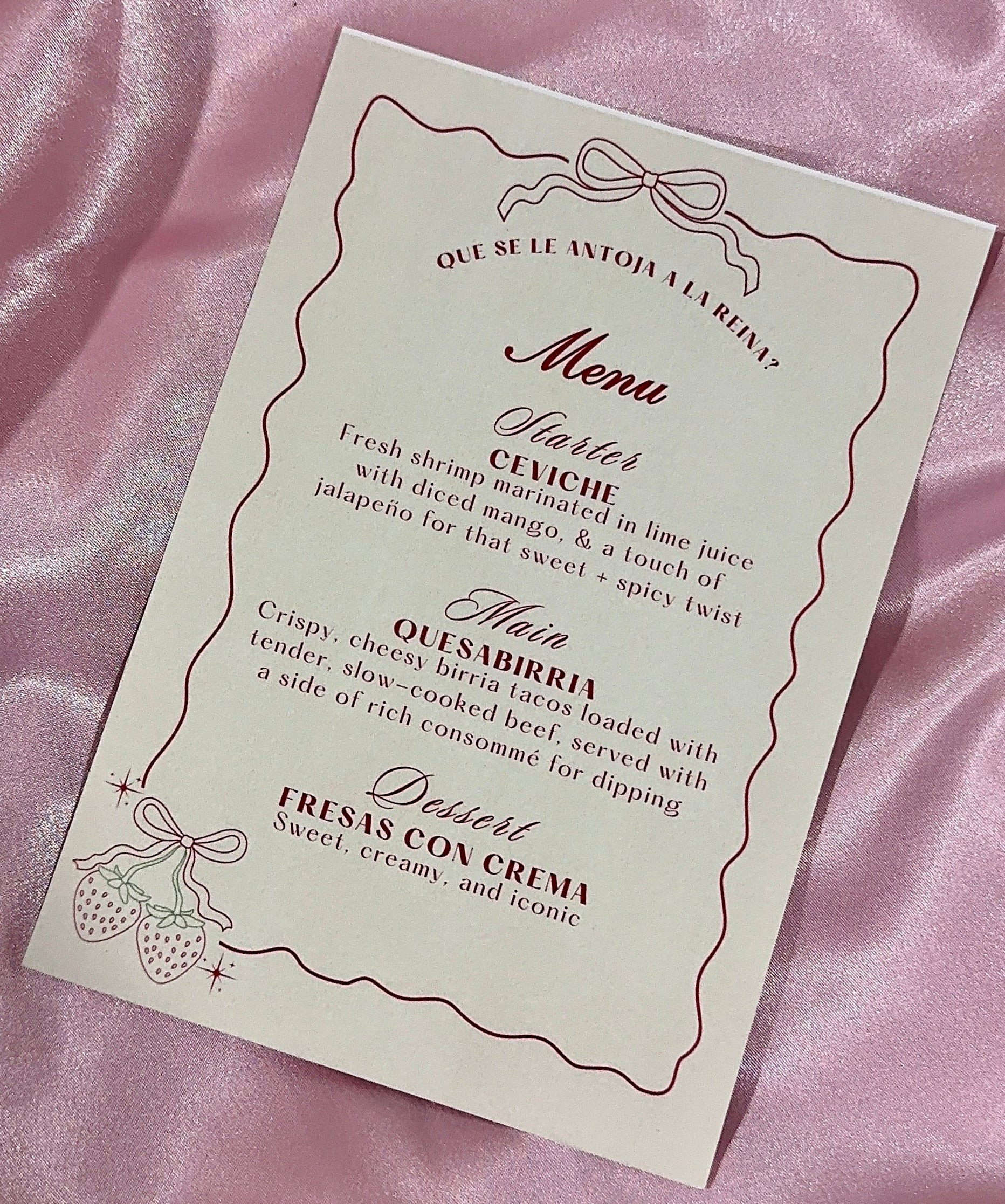 Because even your appetizers deserve this attention to detail. This menu adds the sweetest touch to your perfectly pink tablescape.